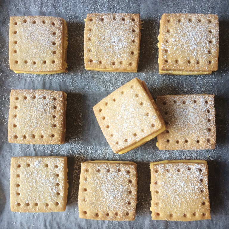 - Pipe some buttercream onto a biscuit, then sandwich with another biscuit.