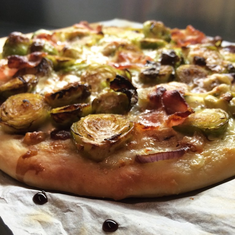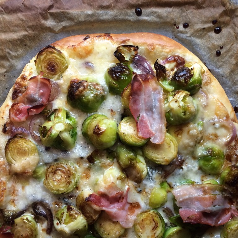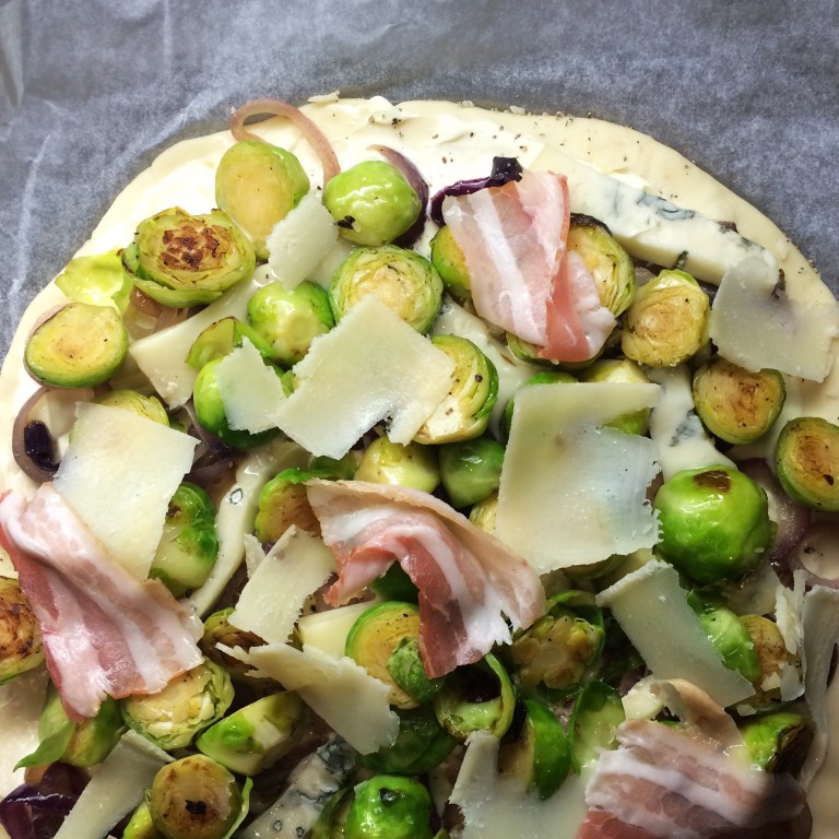 - Devide the caramelised onion and sautéed Brussels sprouts evenly between the 2 focaccia.