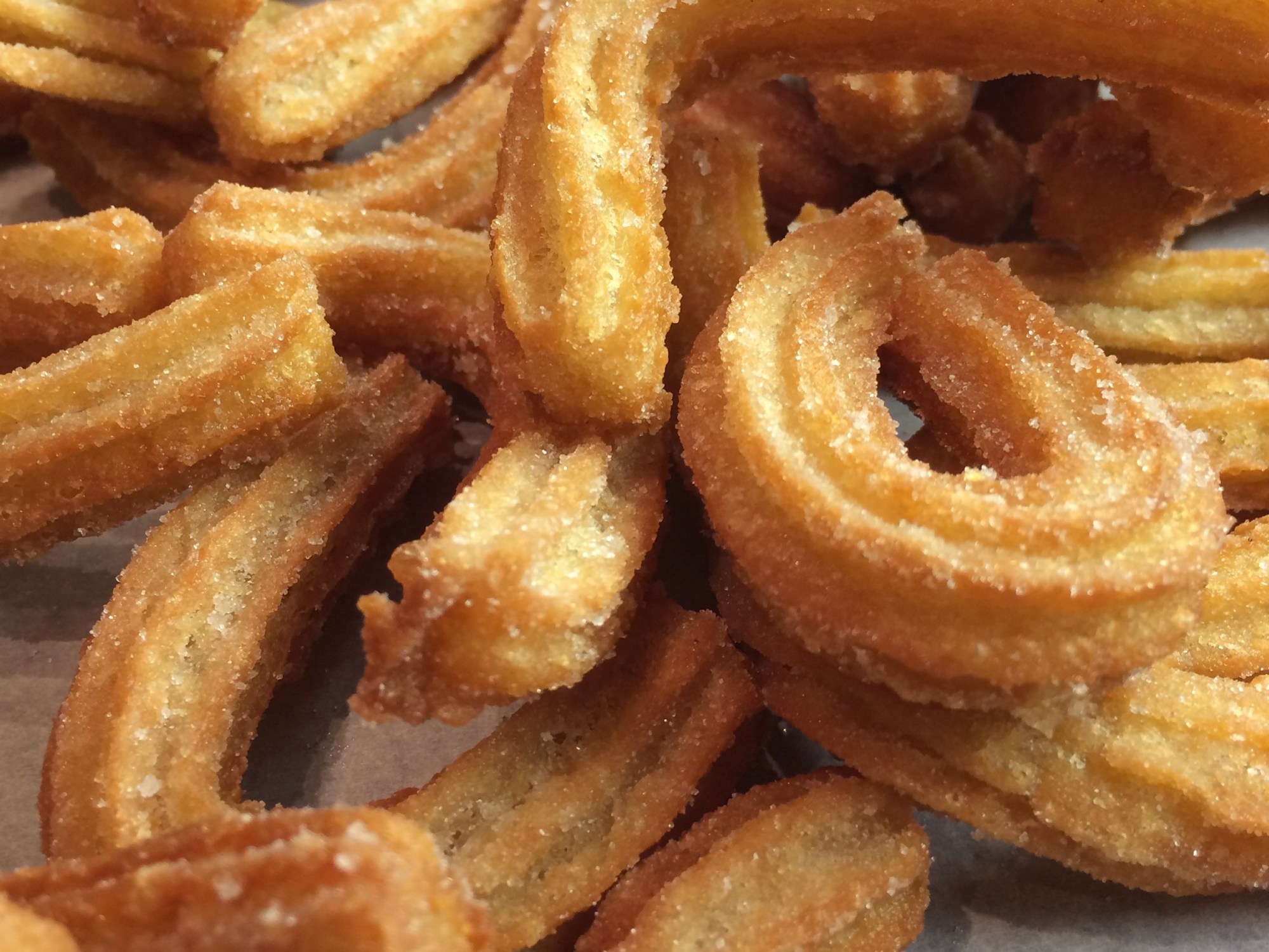 - Repeat until all the dough is used, then toss the churros in some sugar to cover.