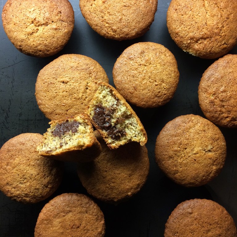 - Put a heaped teaspoon of the chocolate spread in each muffin hole, then cover with the remaining batter.